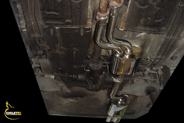 純正:55Φ×2 ⇒ 60Φ×1 に変更し、低回転域でのトルクを重視した作りにしました。非常にこちらのお車への愛着が伝わってくるお客様でした。(なんと10年以上も乗り続けていらっしゃるそうです!)
